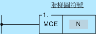 ● MCE N是搭配MC N使用,單獨(dú)存在并無意義。在MC N指令動(dòng)作后,其后之程序若為OUT線圈或一般定時(shí)器狀態(tài)均被清為0,其它指令則不執(zhí)行,直到遇到相同號(hào)碼(N)之MCE指令,才會(huì)解除主控動(dòng)作,恢復(fù)正常之程序執(zhí)行動(dòng)作。