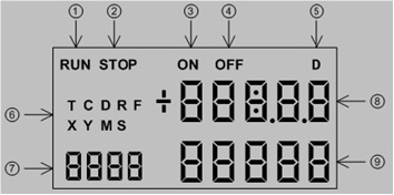 ⑧ 數(shù)值顯示, 當顯示模式為16 位時, 上面5 個位數(shù)為數(shù)值的顯示。