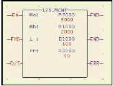 FBs-PLC指令超過(guò)300種以上,并采用最人性化,可讀性最高之多輸入/多輸出指令方式。如左圖之三個(gè)輸入即可變化出5種功能,一個(gè)指令即可達(dá)成大部分它牌PLC數(shù)個(gè)指令才能做到的功能,使程序大為精簡(jiǎn),同時(shí)運(yùn)算結(jié)果可直接由指令方塊右側(cè)之輸出取得。在程序可讀性方面,每個(gè)應(yīng)用指令之輸入或輸出端均有功能助憶簡(jiǎn)碼說(shuō)明,操作數(shù)字段則直接標(biāo)明其屬性簡(jiǎn)稱并可于其正下方直接顯示其狀態(tài)或內(nèi)容值,可免除它牌PLC無(wú)標(biāo)示需死記之麻煩,程序可讀性最高,效率最佳。