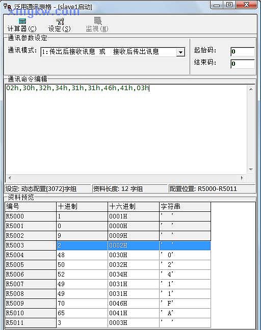 其中,通訊模式設(shè)定為 1:“傳出后接收訊息或接收后傳出訊息 ”; 這樣,就可以通過比較回應(yīng)的內(nèi)容,判斷成功通訊與否。 回應(yīng)內(nèi)容的長度存放在 WR+08,內(nèi)容存放在 WR+09為起始的緩存器列表。