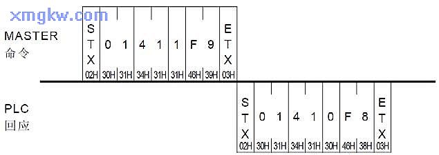 以上圖為例,站號(hào) 01,命令碼 41,數(shù)據(jù)為 1,即是 Master向站號(hào)為 1的PLC發(fā)送“run”命令。而返回的PLC回應(yīng)數(shù)據(jù)中,錯(cuò)誤碼為 0,表示通訊成功。