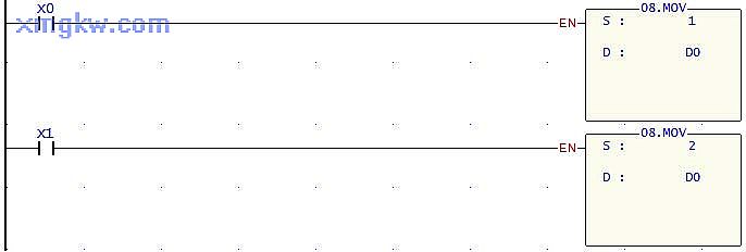 A 產(chǎn)品進(jìn)入傳送帶時(shí), X0由OFF→ON變化一次, [ MOV 1 D0 ]指令執(zhí)行, D0=1,當(dāng)B~C產(chǎn)品進(jìn)入傳送帶時(shí), D0對(duì)應(yīng)的值分別變?yōu)?2、3。