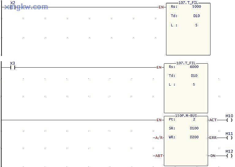 FUN107.T_FIL,單筆數(shù)據(jù)多點傳輸。比一般的 MOV指令,程序長度縮小為 1/5。