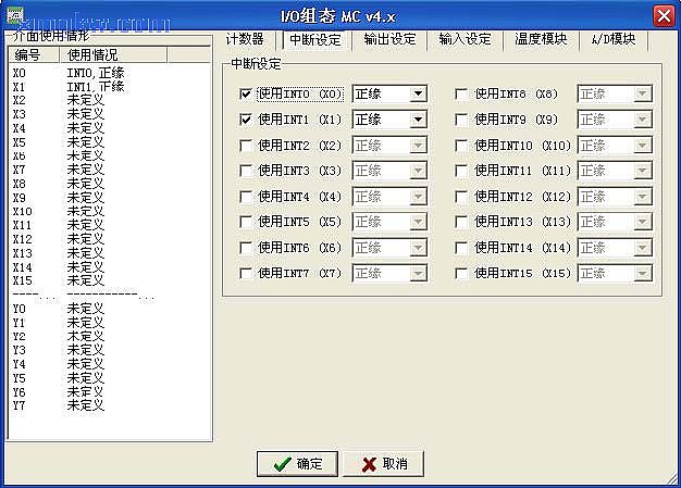 1. “X0+I”和“ X1+I”是永宏 PLC系統(tǒng)預(yù)留的外部輸入中斷標(biāo)號(hào)。當(dāng) X0、X1上升沿觸發(fā)時(shí),執(zhí)行對(duì)應(yīng)的 “X0+I”和“X1+I”中斷。