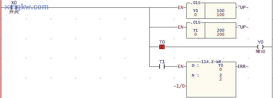 開關(guān) X0接通時,可以通過改變定時器的預(yù)定時間,達到改變脈沖波寬調(diào)變功能,產(chǎn)生震蕩波形?!驹f明】