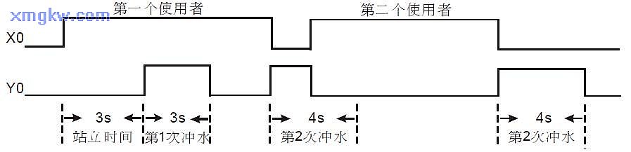 M1的自保,不論其間 X0是否發(fā)生狀態(tài)的改變,都會順利完成第二次沖水動作。