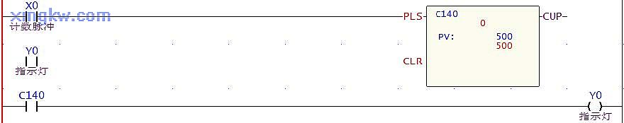 - C140計(jì)數(shù)達(dá)到 500次時(shí), Y0=ON,生產(chǎn)指示燈亮,同時(shí)對(duì)產(chǎn)品生產(chǎn)計(jì)數(shù)重新復(fù)位。
